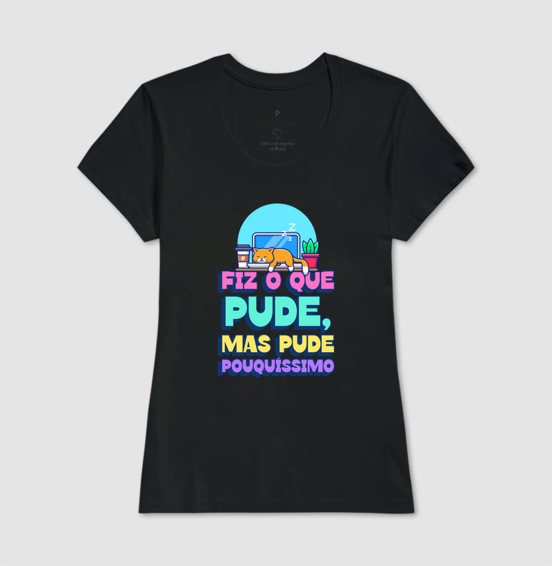 Para quem vive no limite entre o esforço e o cansaço eterno, essa camiseta traduz aquele espírito de 'eu tentei, mas né...' Perfeita para os dias em que o mínimo é o máximo que se consegue. Feita para quem aceita suas limitações com muito humor e estilo. Afinal, nem sempre dá pra ser o herói, né?